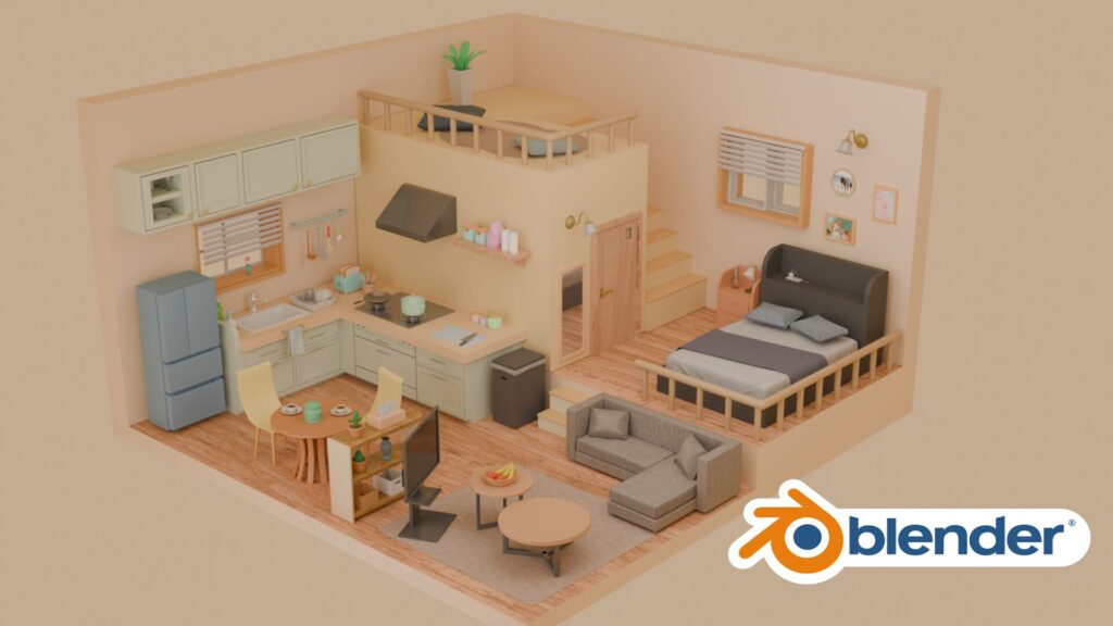 無料の3DCGソフトであるBlenderを使って、ミニチュアの部屋づくりをしていきます。